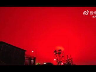 Bầu trời ở Chu Sơn, miền đông Trung Quốc, gây chú ý vì chuyển màu đỏ rực, được giải thích là do hiện tượng khúc xạ và tán xạ ánh sáng từ đèn tàu.