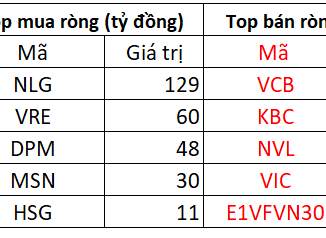 Khối ngoại có phiên bán ròng khoảng 67 tỷ đồng trên sàn HoSE, lực bán tập trung chủ yếu tại một số mã như VCB, KBC, NVL, VIC…
