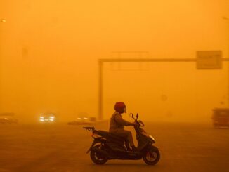 Thủ đô Riyadh của Arab Saudi mịt mù vì bão cát từ sa mạc, khiến tầm nhìn và giao thông bị cản trở.