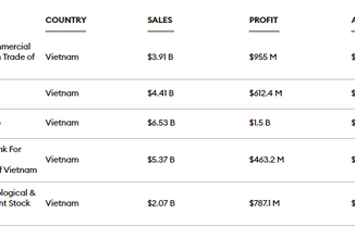 Sự tăng trưởng mạnh của nhóm ngân hàng dẫn đến có 4/5 nhà băng Việt Nam góp mặt trong danh sách Global 2000 năm 2022 của Forbes. Cả 5 doanh nghiệp đều có kết quả kinh doanh tăng trưởng giai đoạn 3 năm gần đây.