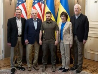 Một đoàn thượng nghị sĩ Mỹ, trong đó có lãnh đạo phe Cộng hòa tại Thượng viện Mitch McConnell, ngày 14/5 đến Kiev, gặp mặt Tổng thống Ukraine Volodymyr Zelensky.