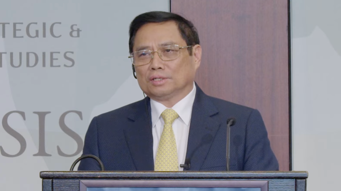 Thủ tướng Phạm Minh Chính phát biểu tại Trung tâm Nghiên cứu Chiến lược và Quốc tế. Video: CSIS.
