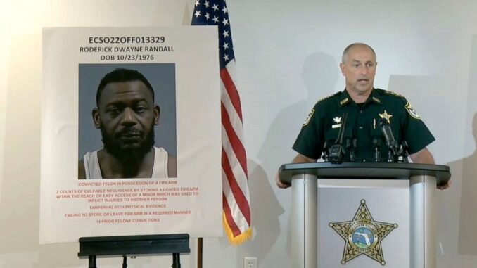 Chip Simmons, cảnh sát trưởng hạt Escambia, bang Florida, hôm 27/6 thông báo bắt Roderick Randall, 45 tuổi với cáo buộc sơ suất đáng trách, sở hữu súng trái phép và che giấu bằng chứng.