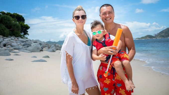 Jonathan Seah cùng vợ và con trai trên bãi biển ở Hong Kong năm 2020. Ảnh: SCMP