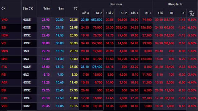 Không nằm ngoài xu hướng giảm của thị trường tài chính toàn cầu, chứng khoán Việt Nam cũng chịu áp lực bán mạnh trên diện rộng. Mặt khác, cầu bắt đáy cũng tỏ ra sẵn sàng tại vùng giá thấp khiến thị trường biến động mạnh và sau nhiều rung lắc, VN-Index cuối cùng đóng cửa xanh nhẹ dù trong phiên có lúc giảm 16 điểm. Dù vậy, hầu hết cổ phiếu nhóm chứng khoán vẫn chìm sâu trong sắc đỏ thậm chí VND, SSI, FTS, TVB… đã có thời điểm chạm sàn.