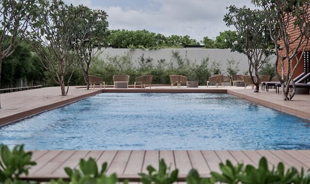 Bước qua cánh cửa căn biệt thự là một không gian sống vô cùng mát mẻ khiến các chủ nhân phải choáng ngợp bởi mảng xanh bao phủ, len lỏi đến từng ngóc ngách. Hệ cảnh quan cây xanh ngoài sân vườn với các hàng dây leo đẹp mắt vừa tạo mỹ quan cho căn nhà vừa giúp điều hòa không khí, giảm nhiệt độ và che chắn ánh nắng. Đặc biệt, mỗi căn biệt thự đều sở hữu hồ bơi riêng có diện tích từ 91m2 – 139m2 tùy từng loại căn, sẽ là điểm tắm nắng, thư giãn và chăm sóc sức khỏe.