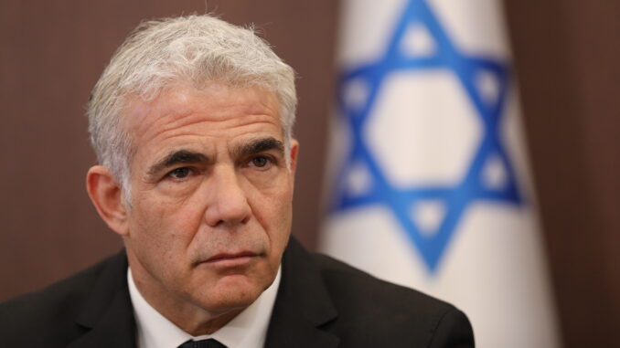 Ngoại trưởng Lapid trong một cuộc họp ở Jerusalem hồi giữa tháng 5. Ảnh: AFP.