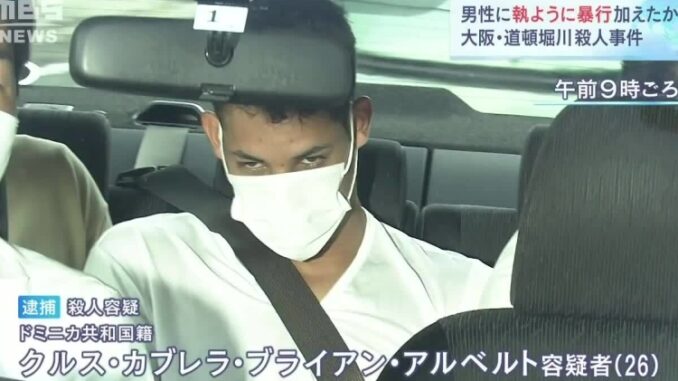 Alberto bị cảnh sát Osaka áp giải hôm 7/8/2021. Ảnh: MBS News.