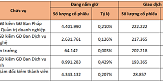 Trong 5 giao dịch được thực hiện, ông Ân Thanh Sơn, Phó Tổng giám đốc nhận nhiều cổ phiếu nhất với 222.222 cổ phiếu, nâng tỷ lệ sở hữu lên 0,22%.