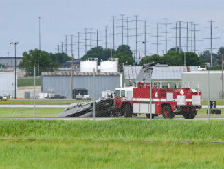 Tiêm kích F-16 của Vệ binh Quốc gia bang Nam Dakota gặp sự cố khi hạ cánh, khiến phần mũi mài xuống đường băng.