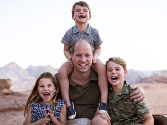 Công tước và Công nương xứ Cambridge đăng ảnh Hoàng tử William cõng bé Louis trên cổ, bên cạnh là con cả George và con gái Charlotte nhân Ngày của Cha.