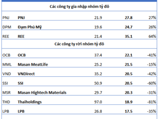 Như vậy hiện cả 3 sàn còn 53 doanh nghiệp vốn hóa tỷ đô, trong đó 4 doanh nghiệp dẫn đầu có vốn hóa đạt trên 10 tỷ USD.
