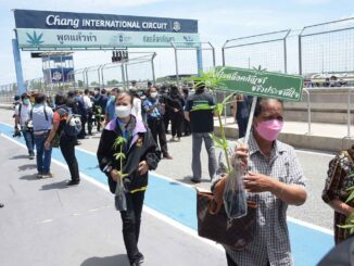 Hội chợ về cần sa ở huyện Muang, tỉnh Buri Ram, Thái Lan, cuối tuần qua thu hút gần 67.000 khách tham quan, khi nhiều người đến nhận hoặc mua cây giống.
