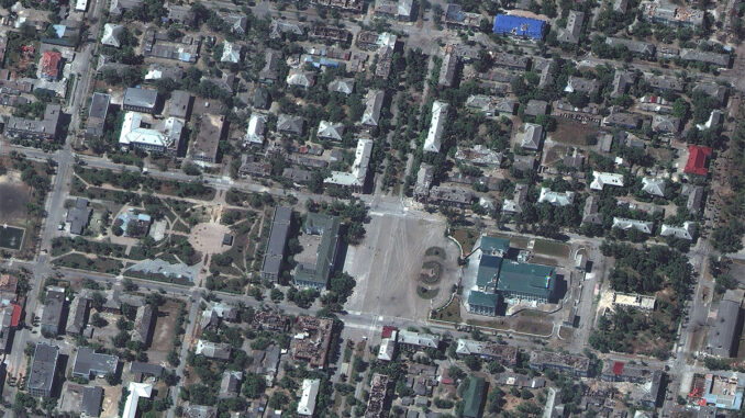 Ảnh vệ tinh do hãng Maxar Technologies chụp ngày 6/6 cho thấy một số tòa nhà ở phía bắc Severodonetsk bị phá hủy hoặc hư hại trong các đợt giao tranh giữa quân Ukraine với lực lượng Nga và phe ly khai. Tuy nhiên, nhiều tòa nhà khác vẫn trong trạng thái tương đối nguyên vẹn.
