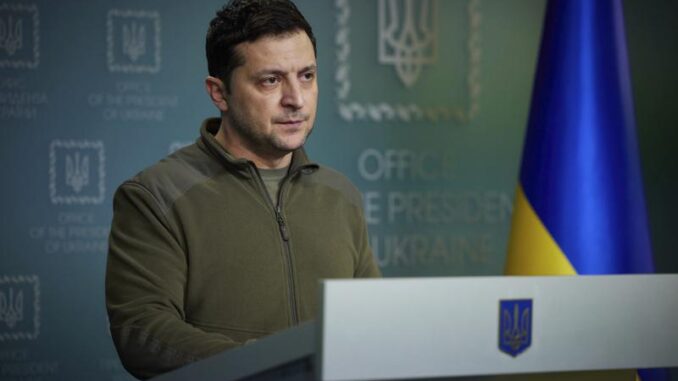 Tổng thống Volodymyr Zelensky phát biểu tại Kiev, Ukraine hôm 25/2. Ảnh: AP.