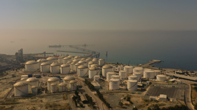 Cảng lưu trữ khí đốt tự nhiên hóa lỏng (LNG) Vasiliko trên bờ biển Địa Trung Hải ở làng Mari, Cộng hòa Cyprus, ngày 25/5. Ảnh: AFP.