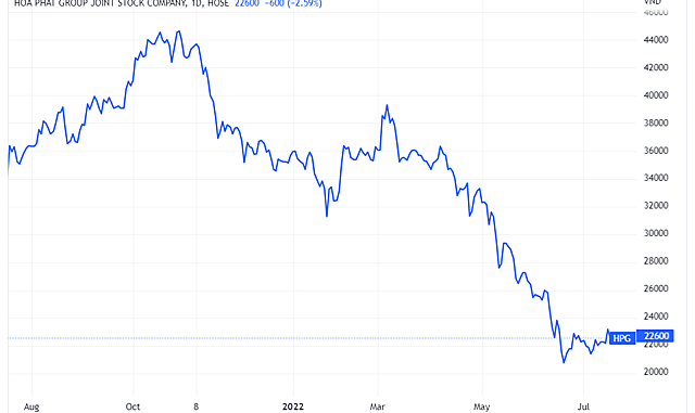 Cổ phiếu HPG kết phiên giao dịch 18/7 tại mức giá 22.600 đồng/cp, giảm 36% tính từ đầu năm (xét theo giá điều chỉnh).