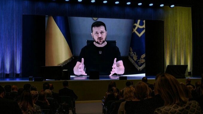Tổng thống Ukraine Volodymyr Zelensky phát biểu tại hội nghị ở Lugano, Thụy Sĩ hôm 4/7. Ảnh: AFP.