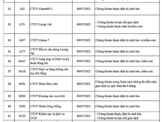 Phần lớn danh sách là các mã chứng khoán nằm trong diện bị cảnh báo hoặc kiểm soát, một số trường hợp thuộc diện thời gian niêm yết dưới 6 tháng và bị hạn chế giao dịch.