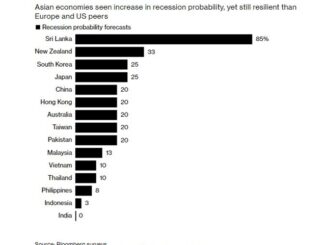 Theo Bloomberg, rủi ro suy thoái gia tăng tại một số nền kinh tế châu Á, vốn trước đó nâng lãi suất nhằm kéo giảm lạm phát.