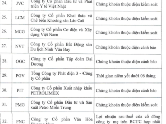 Đây chủ yếu là những cổ phiếu quen thuộc nằm trong diện bị cảnh báo hoặc kiểm soát từ những kỳ thông báo trước, bên cạnh một số mã có thời gian niêm yết dưới 6 tháng nên chưa thể tham gia giao dịch margin…