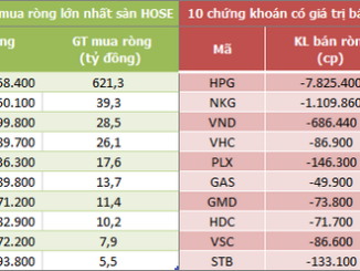 Khối ngoại mua ròng trở lại 618 tỷ đồng trên sàn HoSE, tương ứng khối lượng mua ròng là 3 triệu cổ phiếu.