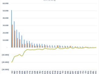 22/34 cổ phiếu chứng khoán có vốn hóa giảm trên 1.000 tỷ, thậm chí SSI, VND, VCI, SHS còn bị thổi bay hàng chục nghìn tỷ đồng từ đầu năm.