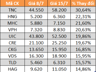 Cổ phiếu tăng giá mạnh nhất thị trường thuộc về