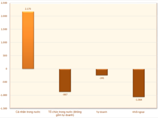 Nhà đầu tư cá nhân trong nước đẩy mạnh mua ròng 2.173 tỷ đồng ở sàn HoSE, gấp 3,5 lần tuần trước đó.