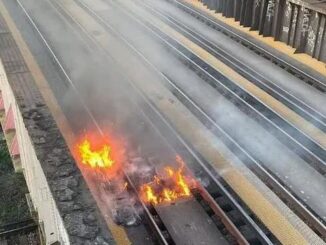 Đường ray xe lửa trên một cây cầu ở Battersea, Nam London – Anh đã bất ngờ bốc cháy vào ngày 11-7, khiến một loạt tuyến đường sắt bị đình chỉ.