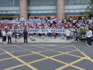 Đám đông hơn 1.000 người tập trung trước chi nhánh Trịnh Châu của Ngân hàng Nhân dân Trung Quốc nhằm đòi lại số tiền gửi đang bị đóng băng.