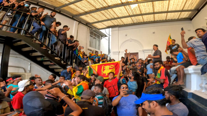 Người biểu tình ngày 9/7 tràn vào phủ tổng thống Sri Lanka để yêu cầu ông Gotabaya Rajapaksa từ chức. Đêm đó, hàng trăm người tiếp tục vượt qua hàng rào an ninh, tiến vào tư gia thủ tướng trên đường Temple Trees và phóng hỏa.