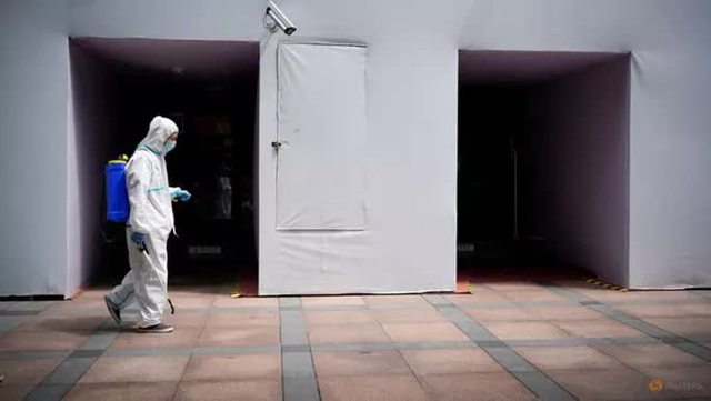 Một công nhân khử trùng trên đường phố Thượng Hải hôm 1-7. Ảnh: Reuters