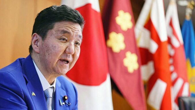 Bộ trưởng Quốc phòng Nhật Bản Nobuo Kishi trả lời phỏng vấn tại Tokyo hồi tháng 4. Ảnh: Kyodo.