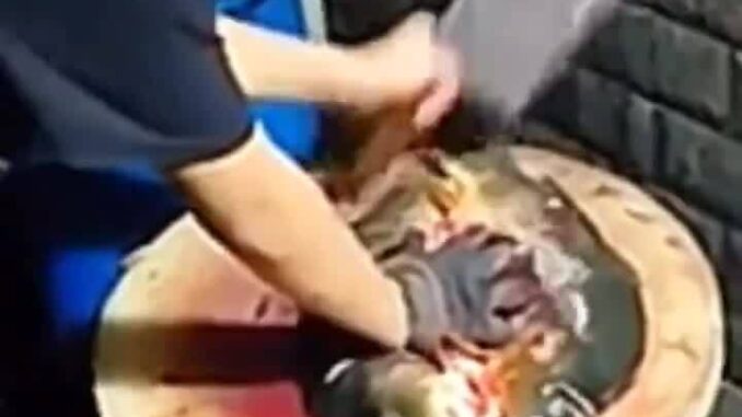 Trong video đăng trên mạng xã hội Douyin của Trung Quốc tuần này, cậu bé ở thành phố Triệu Thông, tỉnh Vân Nam, một tay giữ chặt đầu cá, tay kia cầm dao thoăn thoắt chặt và khía lên thân cá. Cuối cùng, cậu bé cắm dao lên thớt, tháo găng tay, nhấc con cá ra bồn nước rửa sạch.