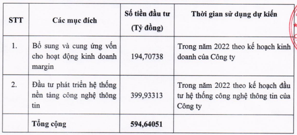 Với giá 10.000 đồng/cp, Chứng khoán MB dự kiến thu về 594 tỷ đồng để bổ sung và cung ứng vốn cho hoạt động kinh doanh margin (195 tỷ đồng), đầu tư phát triển hệ thống nền tảng công nghệ thông tin (400 tỷ đồng).