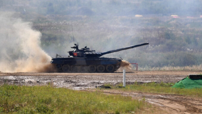 Kíp xe số 1 của Việt Nam thi đấu tại Tank Biathlon 2022 hôm 13/8. Ảnh: QĐND.