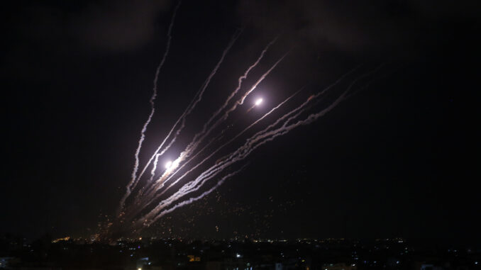 Nhóm vũ trang PIJ phóng rocket về phía Israel đêm 6/8. Ảnh: Reuters.