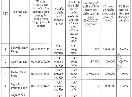 Theo đó, 4 nhà đầu tư sẽ mua 6,7 triệu cổ phiếu và 1 tổ chức là Công ty cổ phần thương mại Nhựa Hà Nội mua 3,3 triệu đơn vị.