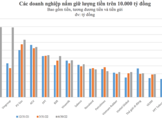 Tại thời điểm 30/06/2022, có ít nhất 16 doanh nghiệp nắm giữ lượng tiền và tương đương tiền vượt ngưỡng 10.000 tỷ đồng.