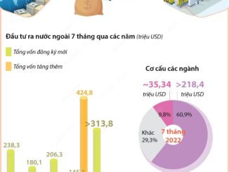 Trong 7 tháng năm 2022, tổng vốn đầu tư của Việt Nam ra nước ngoài đạt gần 358,76 triệu USD, bằng 62,9% với cùng kỳ năm 2021.