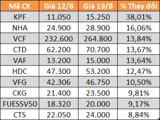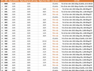 Trong tuần 22/8 – 29/8, có 20 doanh nghiệp trả cổ tức bằng tiền mặt, cao nhất 25%.