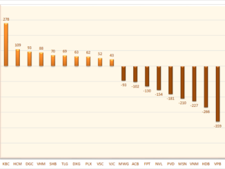 Cổ phiếu VPB xuất sắc đi ngược dòng thị trường, bật tăng 4%(đóng góp 1,4 điểm vào đà tăng của chỉ số) với khối lượng giao dịch đột biến gần 32 triệu đồng, gấp 3 lần phiên trước.