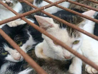Cảnh sát Sơn Đông giải cứu gần 150 con mèo bị nhồi nhét trong lồng sắt ở lò mổ, phần lớn là mèo nuôi bị đặt bẫy.