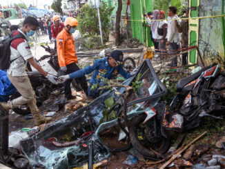 Chiếc xe tải mất lái lao vào bến xe buýt bên ngoài trường học ở thành phố Bekasi khiến ít nhất 10 người chết, trong đó có 4 trẻ em.