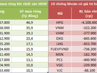 Khối ngoại tiếp tục bán ròng ở sàn HoSE nhưng giá trị giảm 30% so với phiên trước và ở mức gần 70 tỷ đồng.