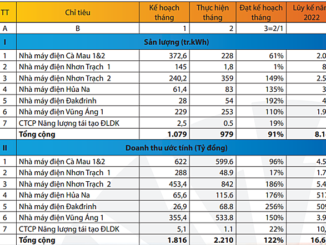 PV Power ước tính doanh thu tháng 7 đạt 2.210 tỷ đồng, giảm 4% so với cùng kỳ năm ngoái và vượt 22% kế đã đề ra trước đó. Đến tháng 8, PV Power lên kế hoạch doanh thu 1.612 tỷ đồng, giảm 11,8% so với cùng kỳ năm trước và giảm 27% so với tháng 7.