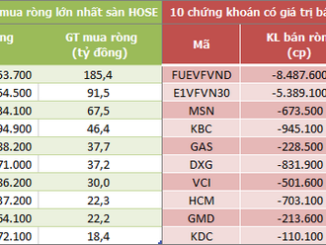 Khối ngoại có phiên mua ròng thứ 4 liên tiếp trên HoSE với giá trị giảm 91% so với phiên trước và còn 59 tỷ đồng