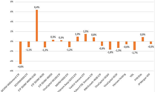 3 quỹ ETF khác cũng ghi nhận tỷ suất đầu tư âm trong tháng 7 là SSIAM VN30, DCVFMVN30 và MAFN VN30 – đều là các quỹ sử dụng tham chiếu VN30. Với hiệu suất âm khoảng 1,2%, các quỹ này hoạt động tốt hơn chỉ số tham chiếu khi VN30-Index giảm gần 1,4%.