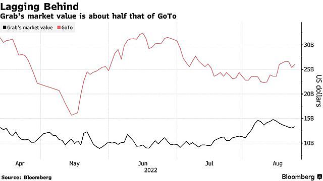 Cả hai công ty không có lợi nhuận này đều đang phải vật lộn để thuyết phục các nhà đầu tư về tiềm năng kiếm tiền của họ sau khi niêm yết trên sàn chứng khoán trong vài tháng gần đây. Tuy nhiên, giá cổ phiếu của GoTo giảm ít hơn Grab trong thời gian qua, và giá trị thị trường của ứng dụng gọi xe đến từ Indonesia hiện vào khoảng 26 tỷ USD, gấp hai lần đối thủ.
